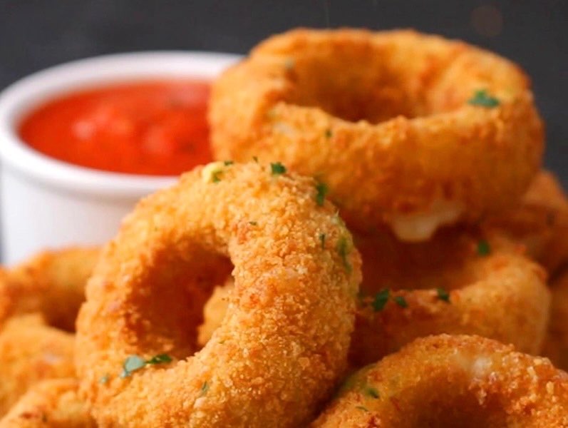 ۴ تکه پیاز سوخاری همراه با سیب زمینی سرخ شده